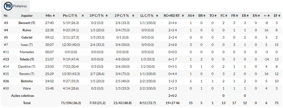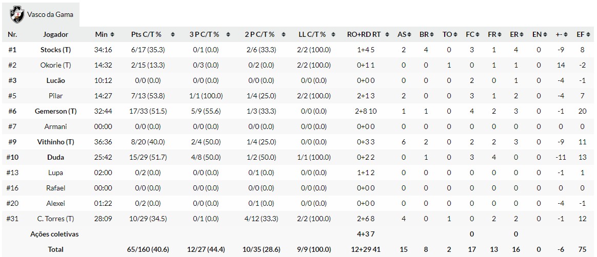 O Vasco entrou em quadra nesta terça-feira para encarar o Pinheiros, pelo NBB, em São Januário e acabou superado por 71 a 65. O destaque vascaíno foi o ala Gemerson, com um duplo-duplo, que marcou 17 pontos e pegou 10 rebotes.