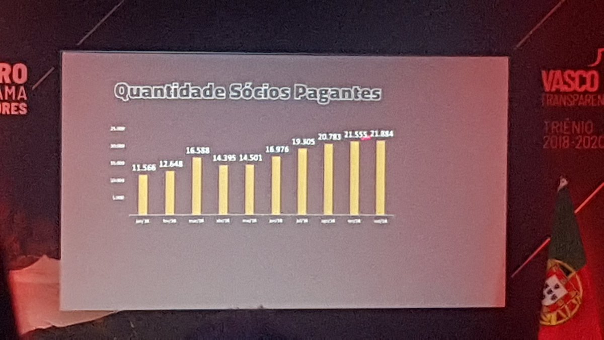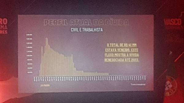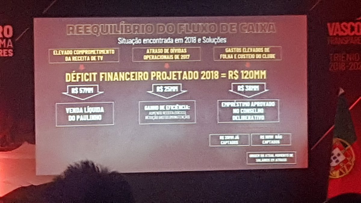Adriano Mendes, VP de Controladoria, inicia sua apresentação sobre a reestruturação financeira do Vasco. #gevas
