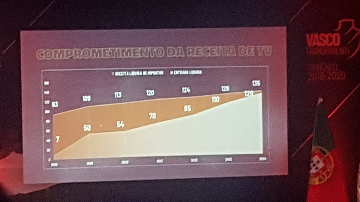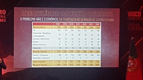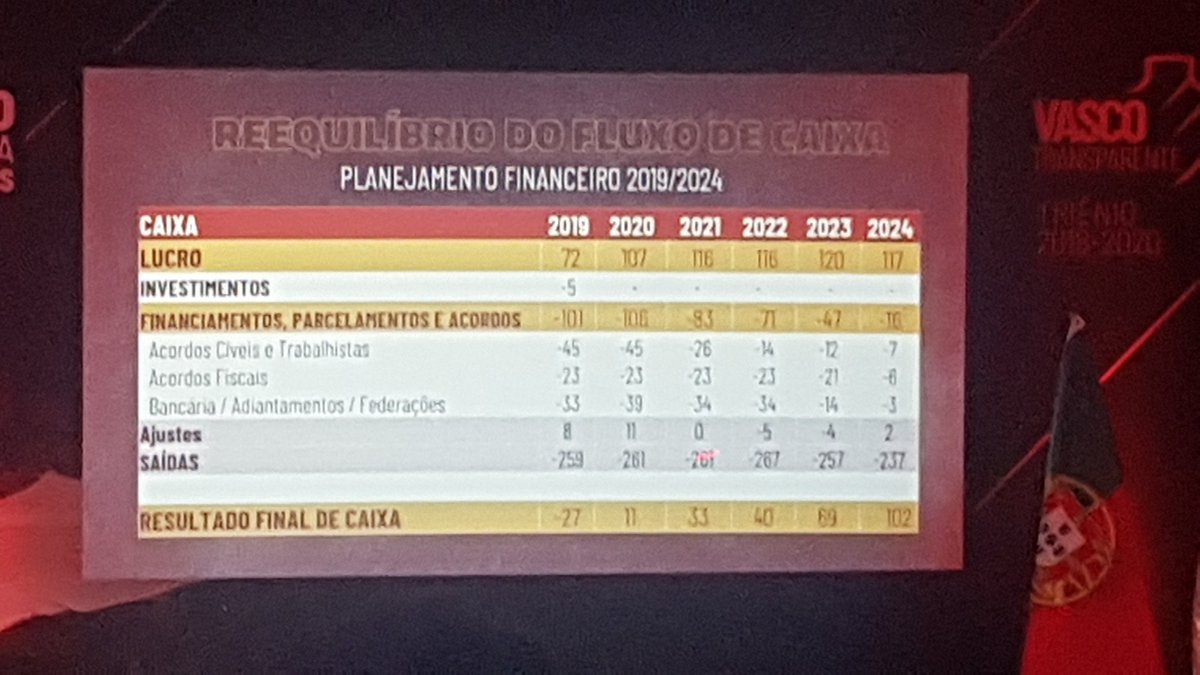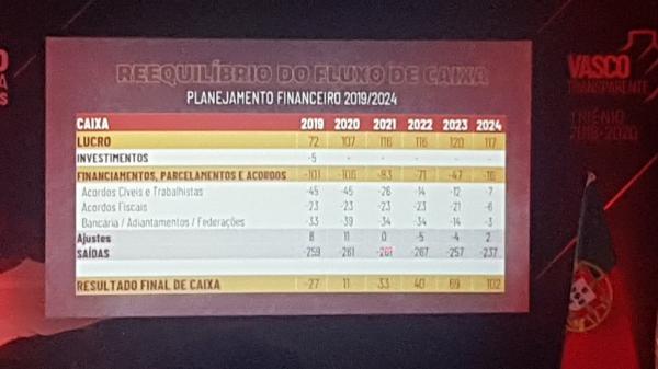 Projeção de receitas do Vasco até 2024. Lucro em seis anos chegaria a R $ 117 milhões. #gevas