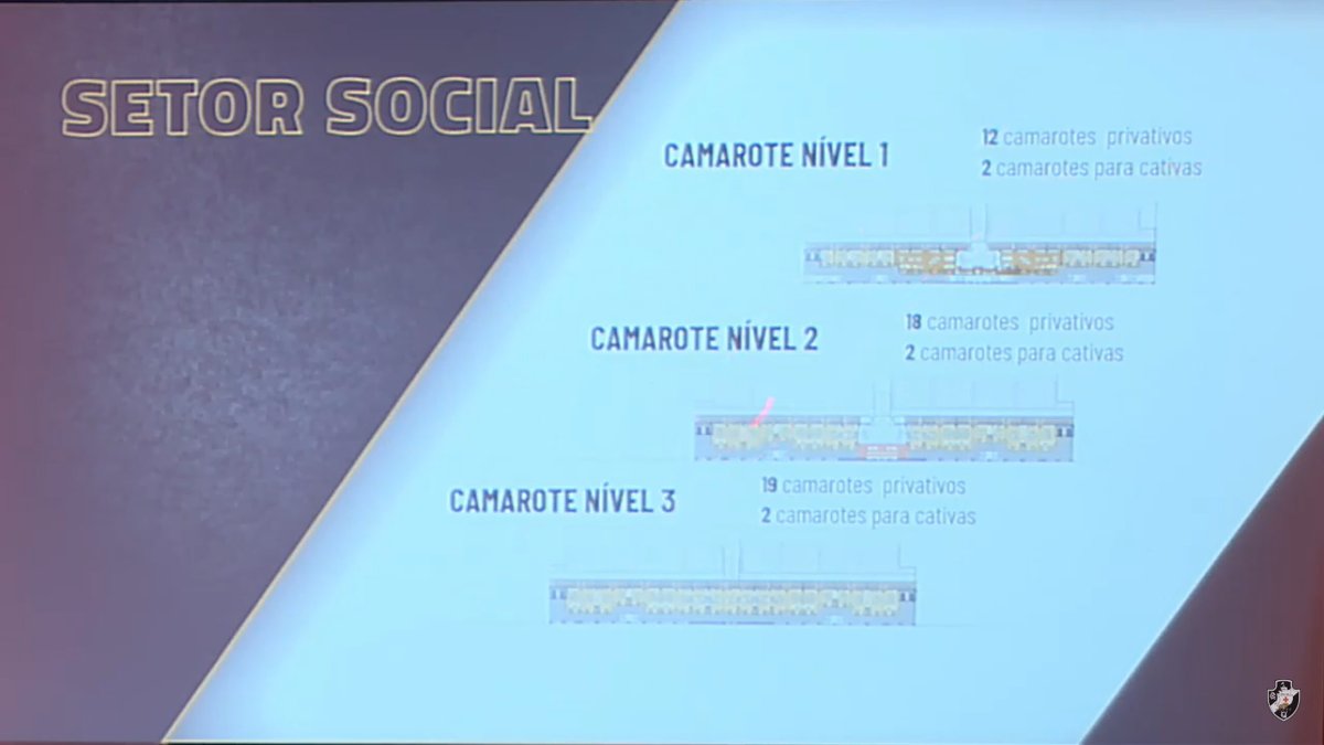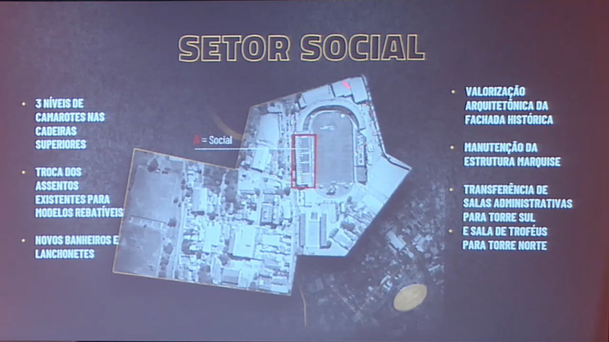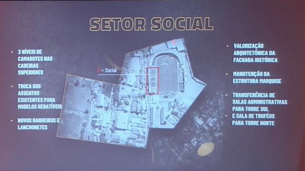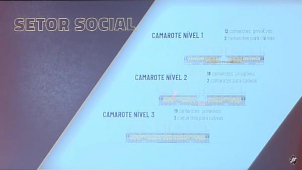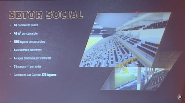 Imagens dos camarotes no Setor Social. Projeção para o futuro: