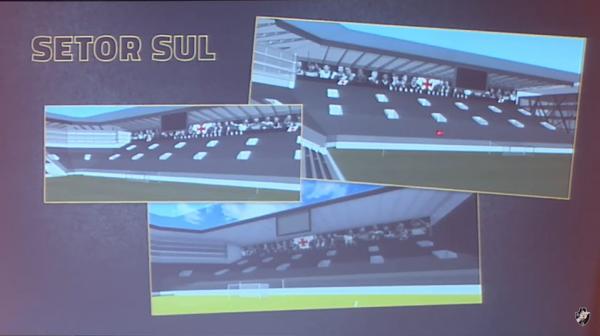 ANEL FECHADO!!!!!!!! Projeção de como ficaria o Setor Sul, com o anel fechado. Arquibancada para 15.145 espectadores no estádio: