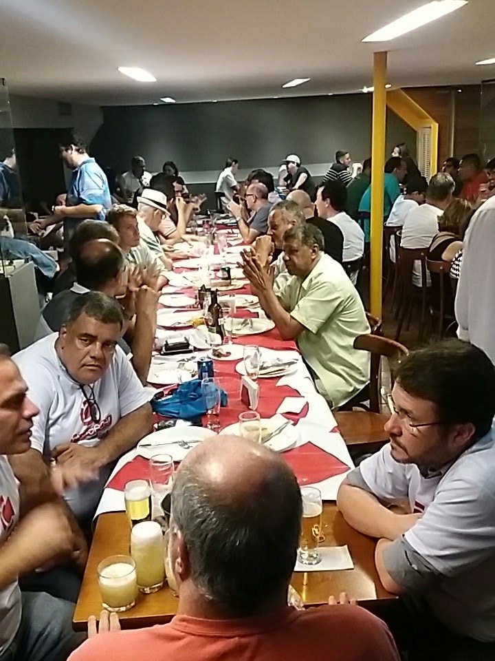 O espaço reservado para quase 100 pessoas foi literalmente tomado e ainda tivemos rotatividade de pessoas no decorrer da noite, uns chegando, outros saindo, brindes dados a todos, quiz para distribuição de itens vinculados ao Vasco, o canto de parabéns com direito a bolo e, claro, o tradicional Casaca! fechando com chave de ouro a agradabilíssima noite festiva.