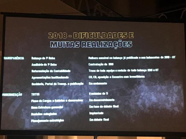 Presidente @ascampello realiza a mesma apresentação feita aos investidores para os conselheiros do clube. Quórum é baixo neste momento, na Lagoa.