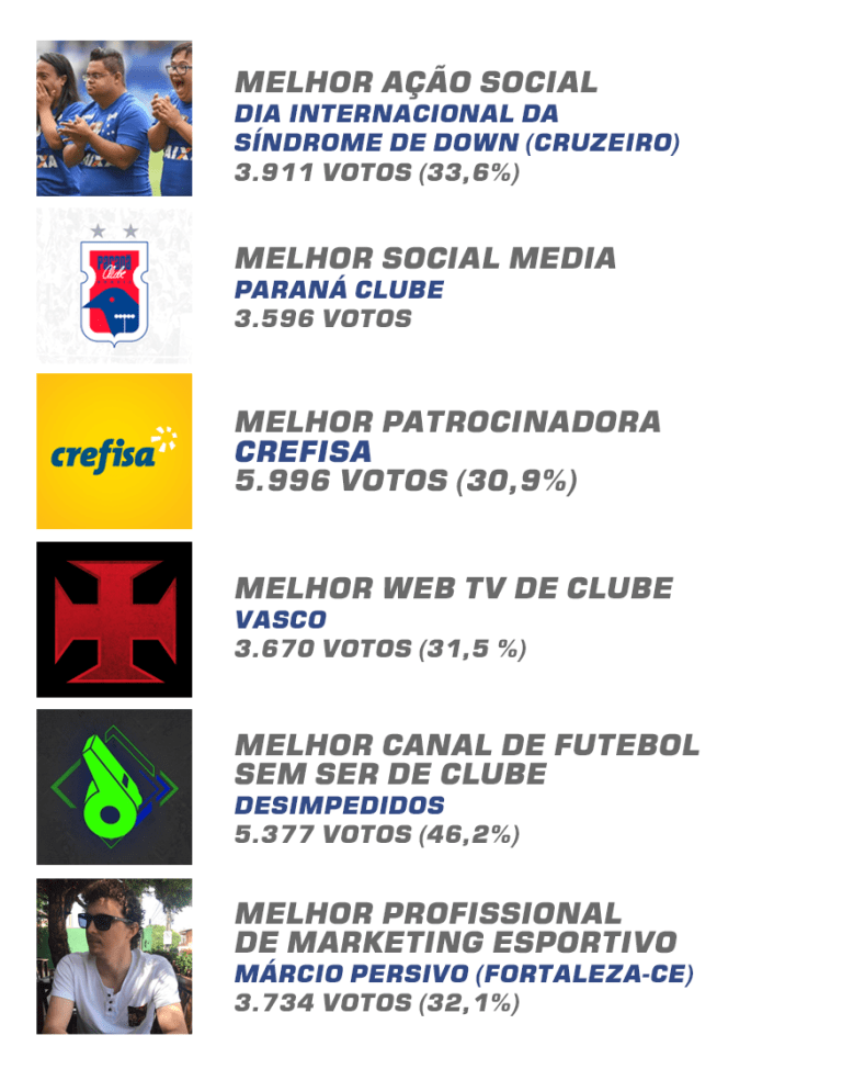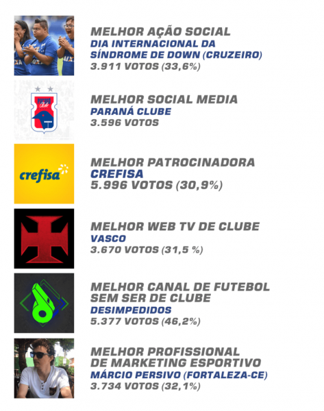 Após dez dias de votação e 11.643 votos em cada categoria, está no ar o resultado final com os vencedores do Brand Bola Awards 2018. Estudantes, fãs e profissionais do mercado escolheram os melhores do marketing esportivo no ano de 2018.