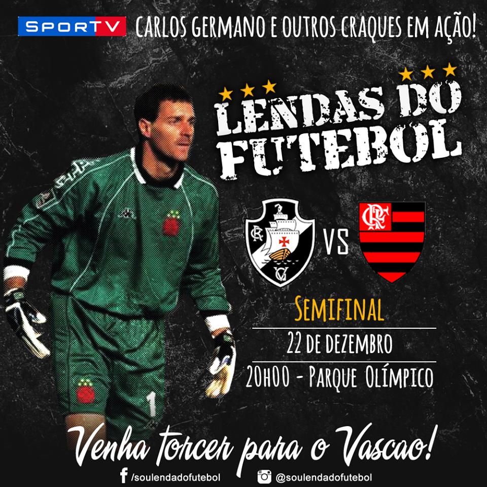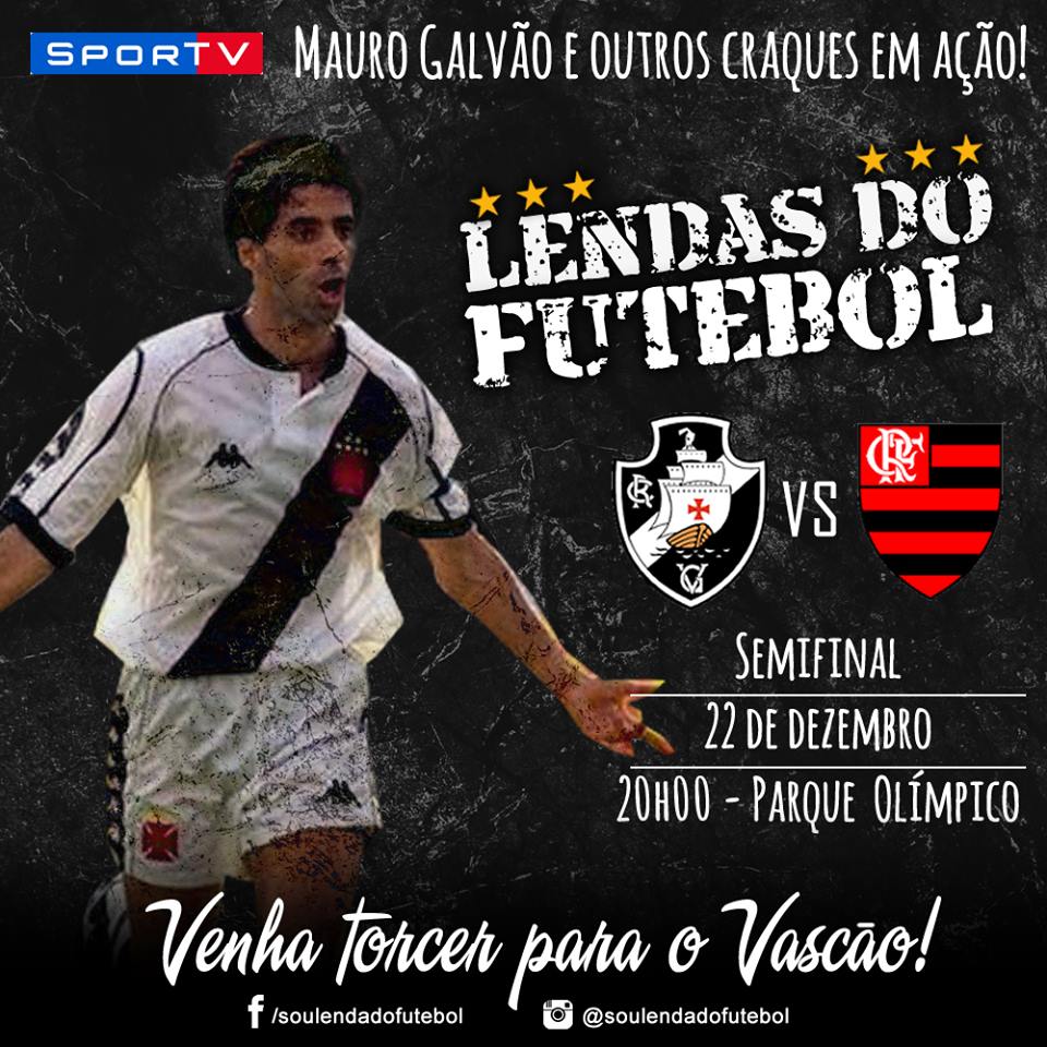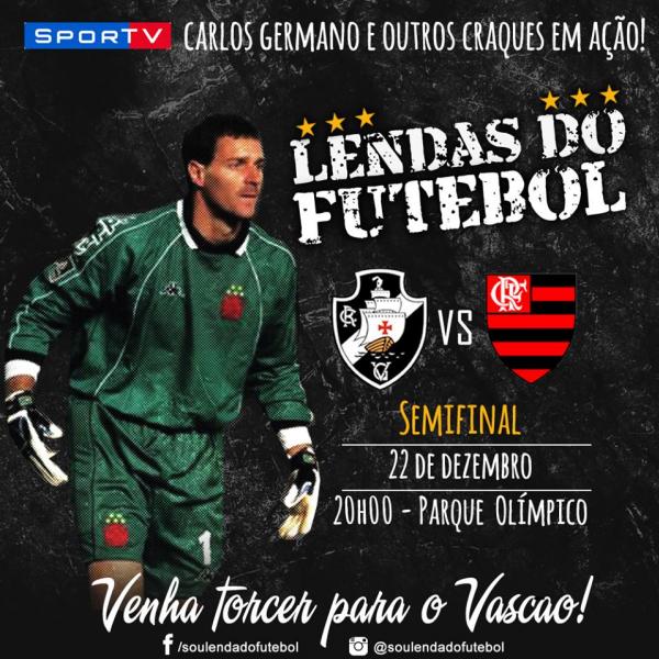 O Parque Olímpico do Rio de Janeiro receberá neste fim de semana o evento Lendas do Futebol. Os quatro grandes clubes do Rio de Janeiro se enfrentarão. O Vasco estreia na semifinal diante do Flamengo, neste sábado (22/12), às 20h. A entrada para quem quiser apoiar o Gigante da Colina na competição é gratuita. O SporTV transmite.