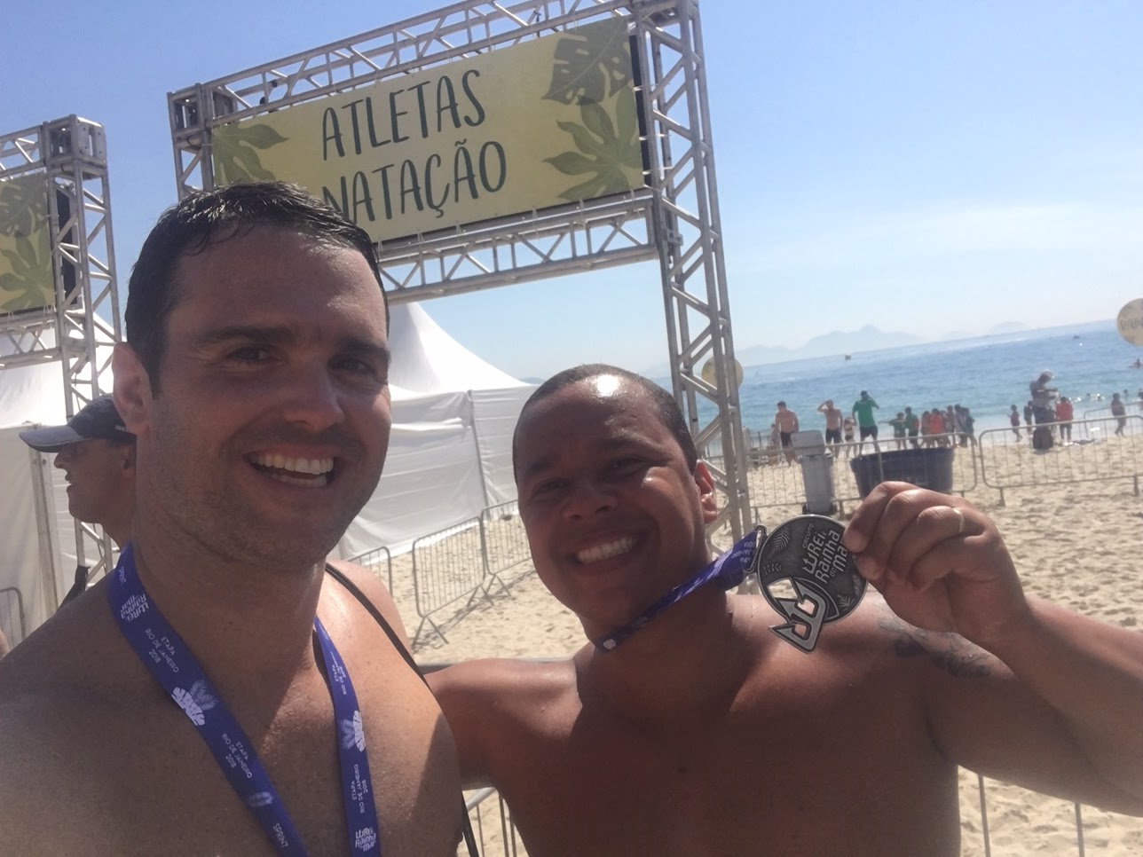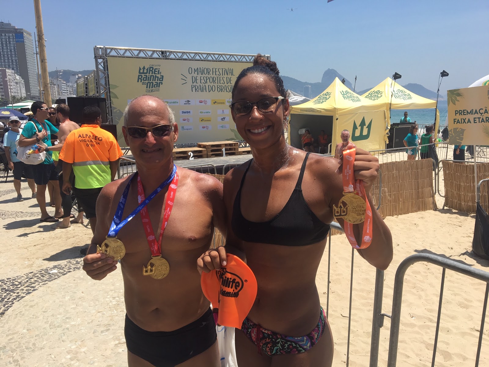 A Camila Alves, minha colega de BNDES, que ganhou a prata na categoria dela, na prova Challenge, de 3,5km (na mesma prova o Vasco da Gama conquistou outra prata, na categoria M60/64, com Paulo Afonso de Menezes), a Dayse Polisseni, que também ficou em 2º lugar na categoria, mas na prova Classic, de 2km (chegando com o mesmo tempo da Carmen Borges, também do Vasco da Gama, que ficou em 3º lugar na categoria) e mais alguns atletas optamos por levar o nome do Instituto Renascer das Águas, do nosso colega Salomão Petra Bittencourt, que está de volta ao nosso Vasco para a temporada de 2019.