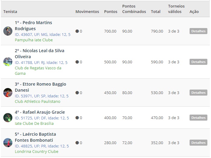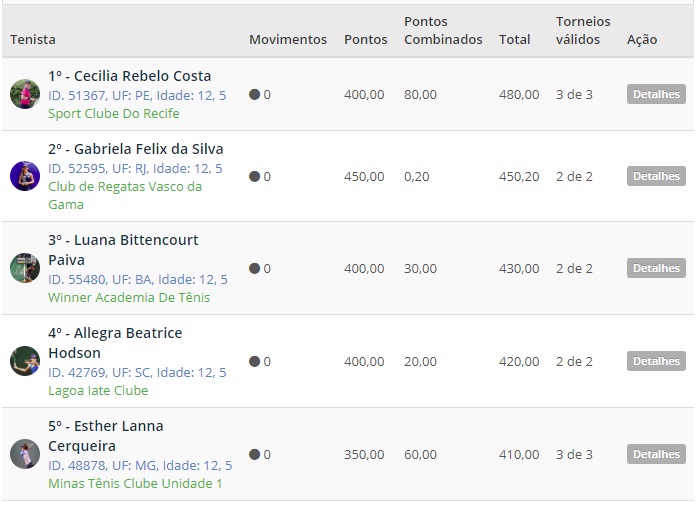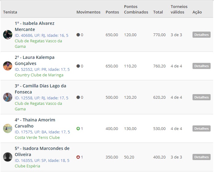 Tênis: Vasco fica em 4º lugar no Circuito Brasileiro e tem 4 tenistas no top 5 do ranking
