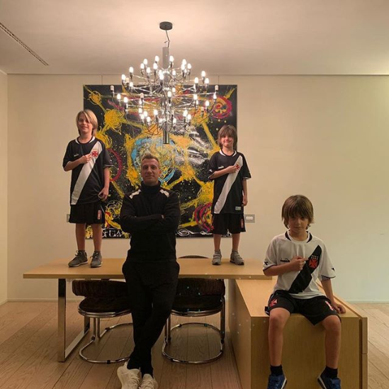 Curtindo férias em Milão, o atacante argentino Maxi López não tira o Vasco da cabeça. Prova disso é que, nesta quarta-feira, ele vestiu os três filhos de Vasco e publicou uma foto do momento no Instagram.