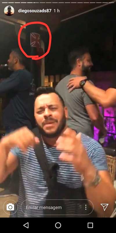 Nele, Diego Souza aparece acompanhado de um conhecido vascaíno e, logo atrás, aparece um detalhe no espaço que está decorado de Vasco. Em pouco tempo, a publicação viralizou entre os cruzmaltinos nas redes sociais.