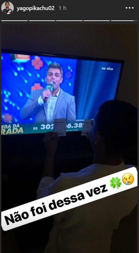 Yago Pikachu publica foto acompanhando o sorteio da Mega-Sena da Virada: 'Não foi dessa vez'