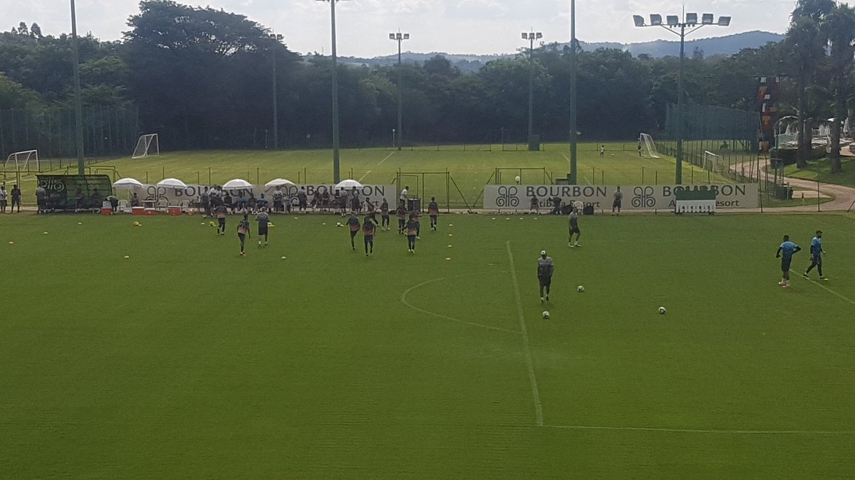 Os hóspedes do hotel - entre eles alguns vascaínos- já estão posicionados para assistir ao jogo-treino. #gevas