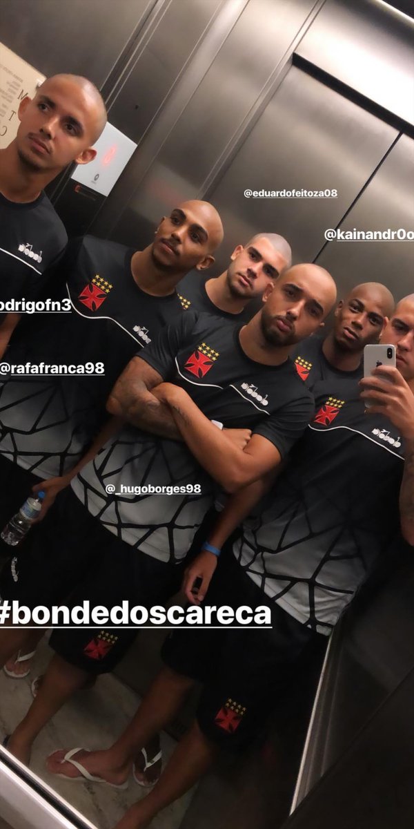 Após 'trote', vascaínos formam o 'bonde dos carecas'; veja foto