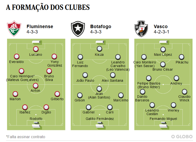 Dos três rivais, o Vasco é quem tende a estruturar seu time em torno de um meia central: Bruno César, de 30 anos, o reforço que despertou maior expectativa entre os oito já apresentados em São Januário. Oliveira vê coerência na chegada de laterais ofensivos e na busca por jogadores velozes, como o meia Yan Sasse, contraponto a um miolo mais lento.
