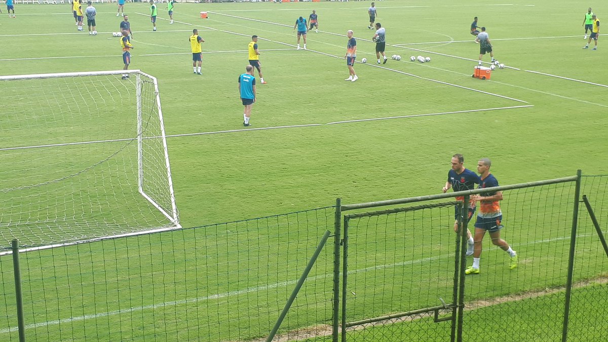 Bruno César e Moresche correm em volta do gramado nesta 2ª-feira