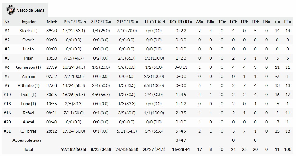 A 2min21s do fim, Caio Torres pontuou para o Vasco, reduzindo o ímpeto do rival. Para piorar ainda mais a situação do time da casa, Gemerson ampliou na sequência, praticamente definindo a vitória dos visitantes. Sem forças para reagir, o Joinville não foi páreo para o Vasco, que saiu de quadra vencedor: 92 a 81.
