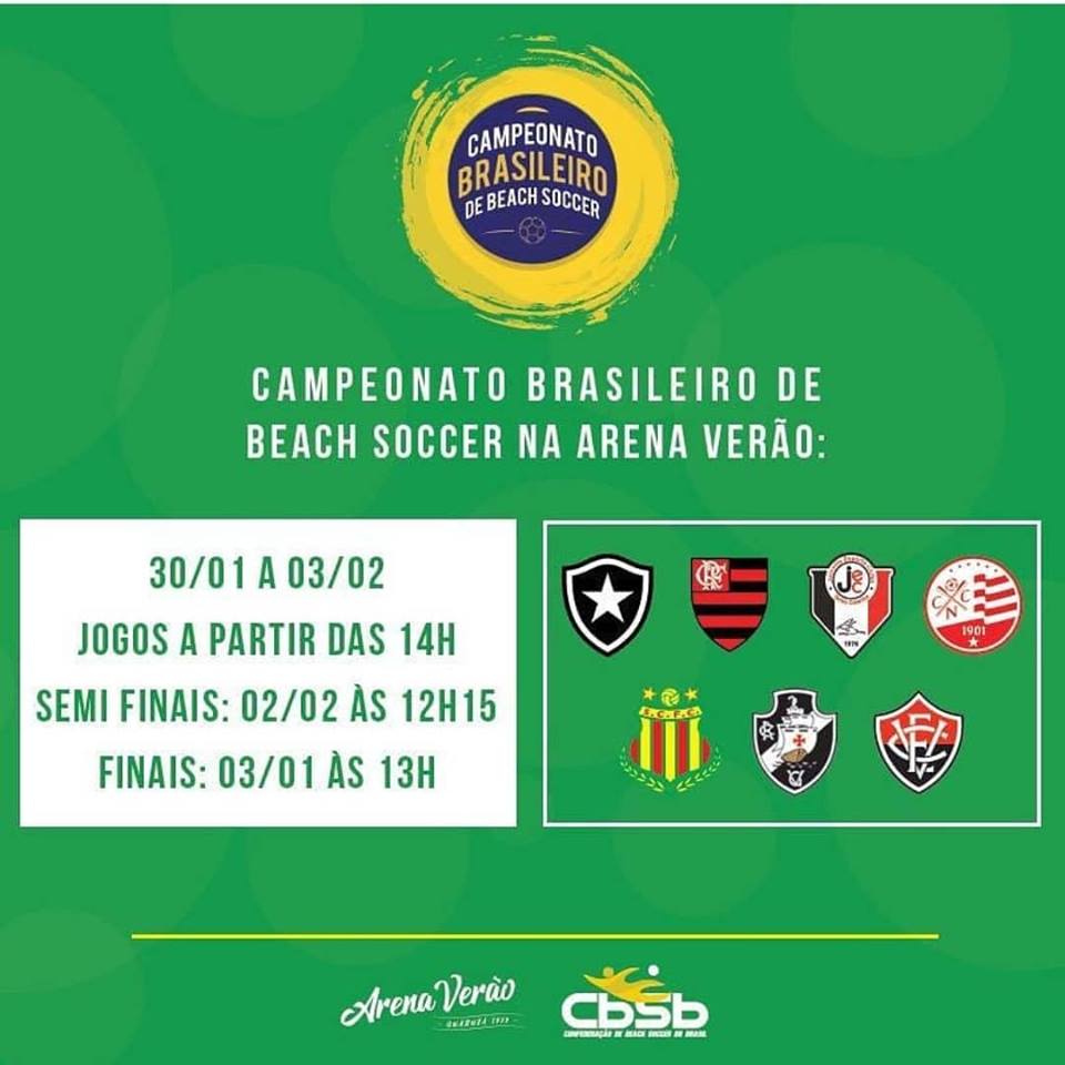 A partir do dia 30/01 até o dia 03/02, no Guarujá-SP, vai rolar o Campeonato Brasileiro de Beach Soccer 2019!