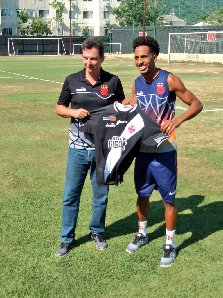 Lucas Mineiro recebeu camisa do Vasco das mãos do diretor-executivo Alexandre Faria