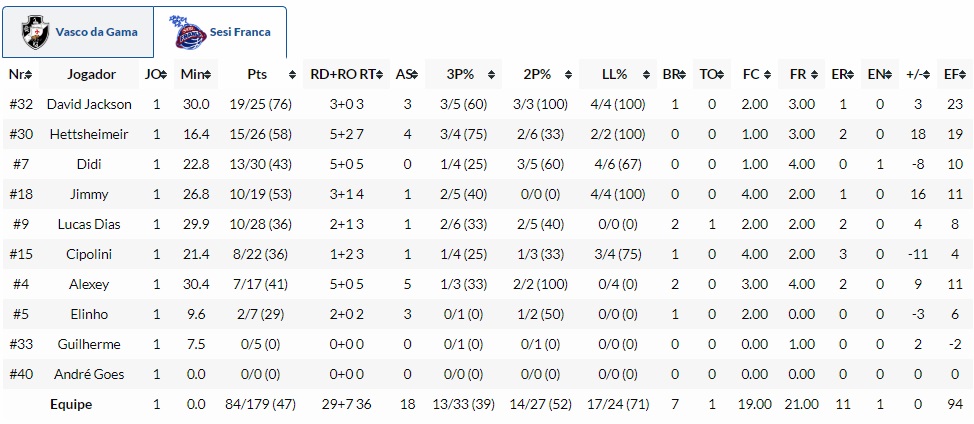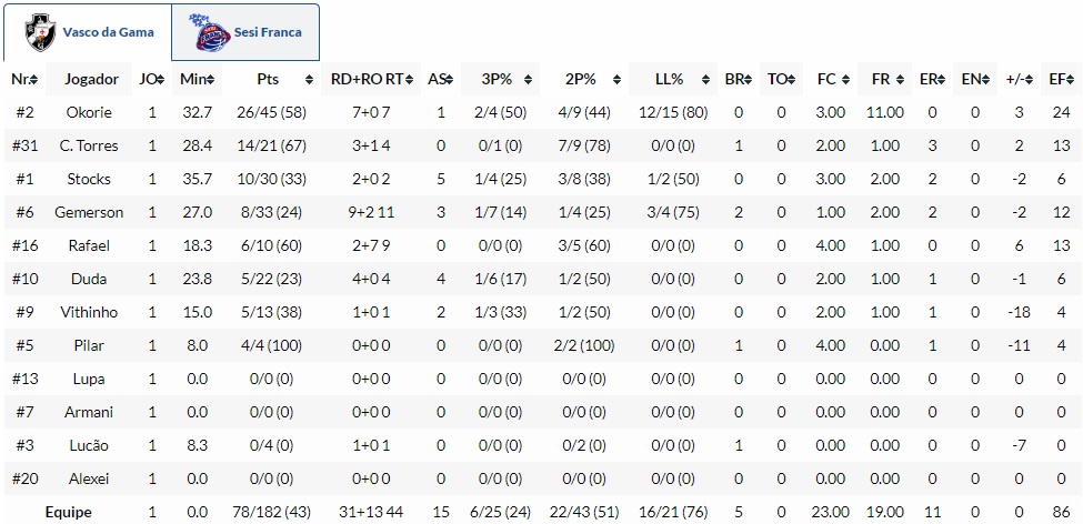 Partida com dois tempos bem diferentes. Jogando no Ginásio de São Januário, Franca parecia em casa e atropelou o Vasco por 55 a 28 na primeira etapa. Na segunda, no entanto, a equipe cruzmaltina reagiu e chegou a cortar a vantagem para cinco pontos, mas não conseguiu completar a virada e acabou derrotada 84 a 78 nesta quinta-feira em jogo válido pela 11ª semana do NBB.