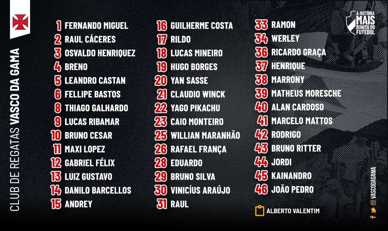 Olha aí a numeração oficial do Vasco da temporada!