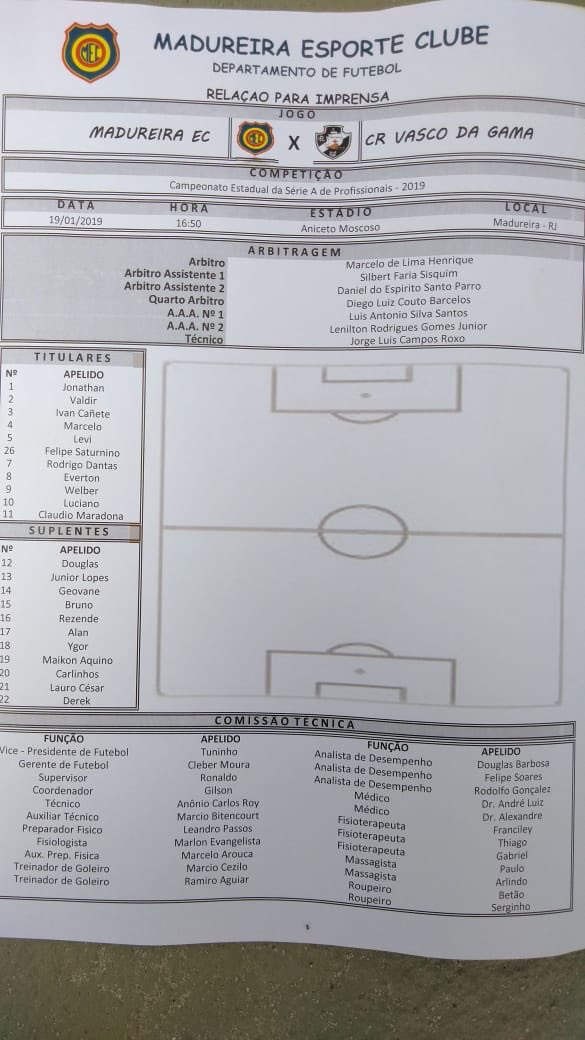Veja a escalação do Madureira para o jogo contra o Vasco