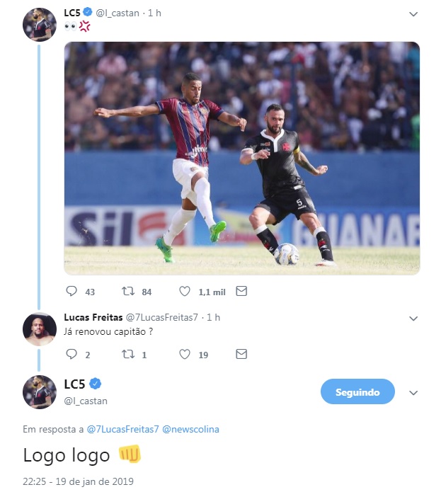 19/01/19 - Leandro Castan publica imagem em referência a Madureira x Vasco