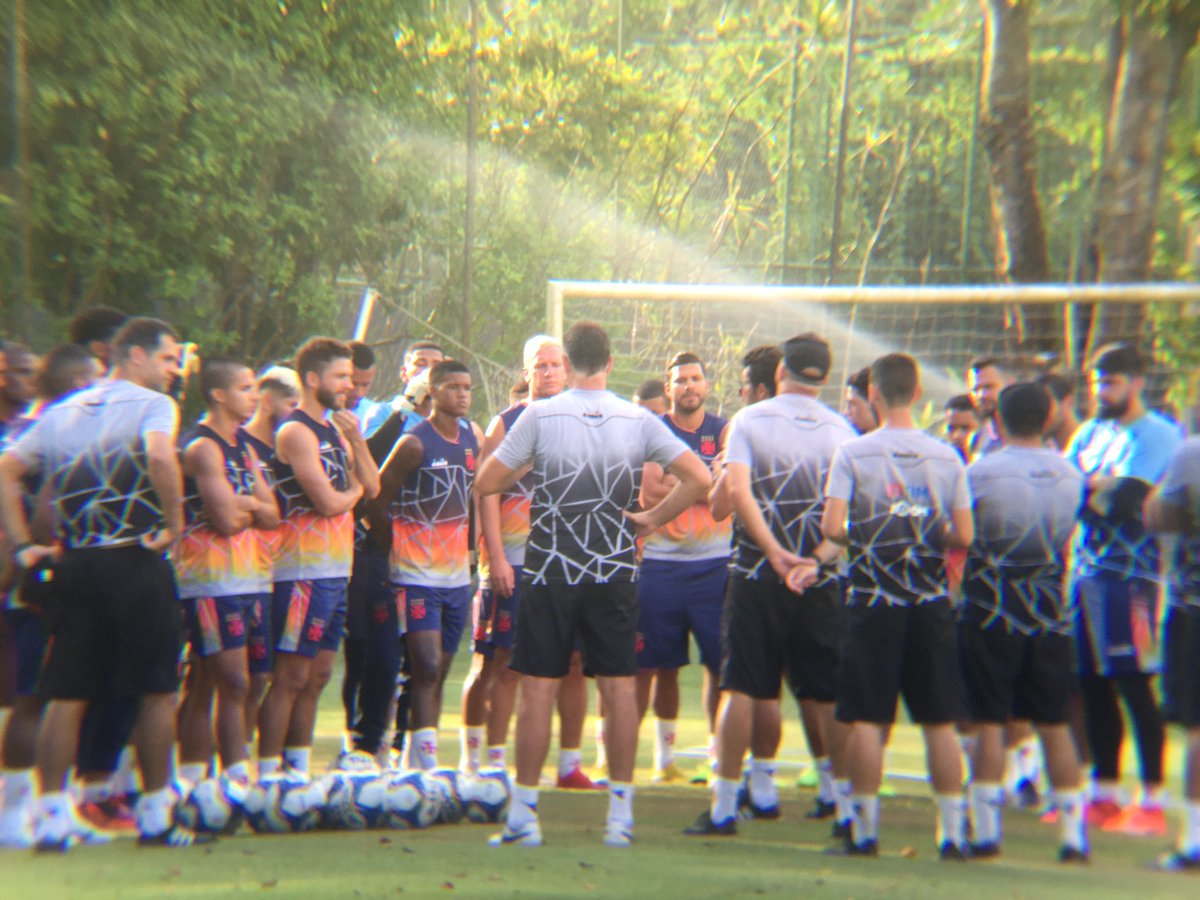 Alberto Valentim reúne o elenco antes do treino desta 2ª-feira