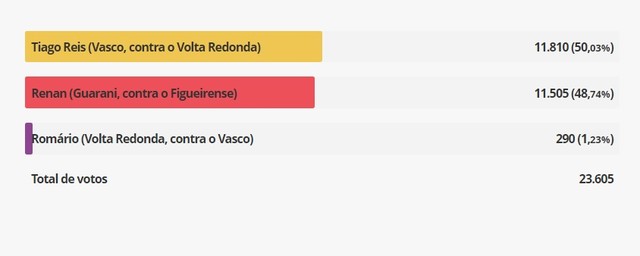 A disputa foi bastante acirrada. Tiago Reis teve 50,03% dos votos contra 48,74% de Renan, do Guarani, pelo gol marcado diante do Figueirense. Romário, do Volta Redonda, ficou com apenas 1,23%. Foram mais de 23 mil votos.