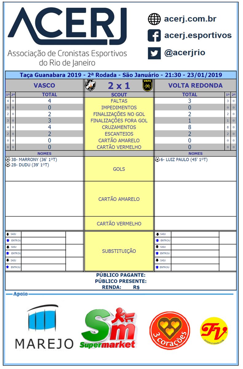 Scout do 1º Tempo de Vasco e Volta Redonda pela 2ª Rodada da Taça Guanabara 2019 em São Januário #acerjinforma #VASxVRE #cariocão2019 #omaischarmoso #omaisvisto