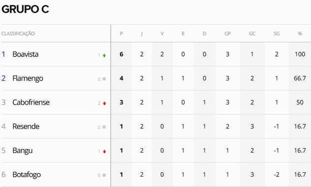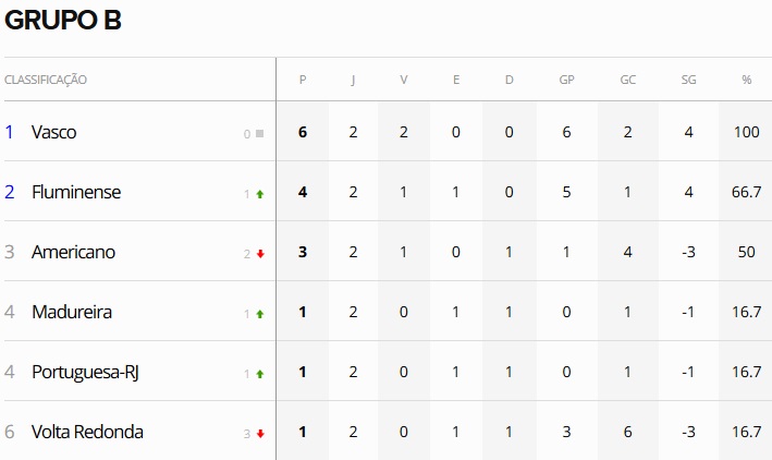 Terminada a 2ª rodada da fase de grupos da Taça Guanabara, o Vasco, que venceu o Volta Redonda por 5 a 2, segue em 1º lugar no Grupo B, porém agora de forma isolada. O Gigante da Colina tem a melhor campanha entre todos os clubes que disputam a Taça GB.