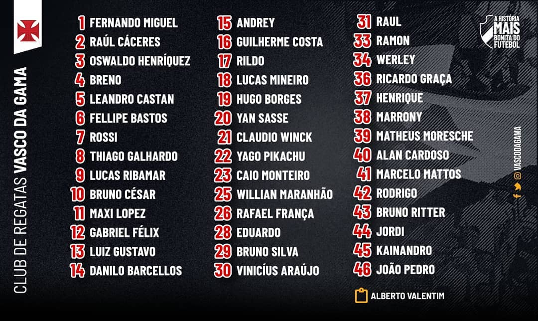 Fonte: Instagram oficial do Vasco