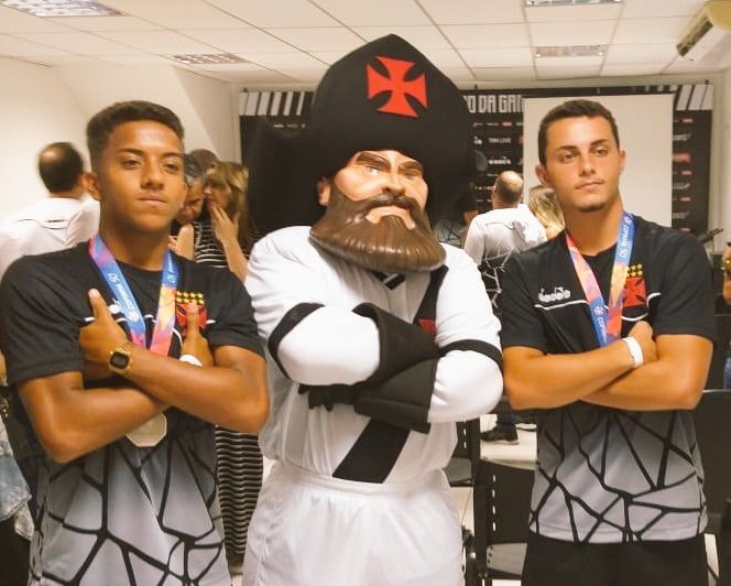 Juniores: Mascote do Vasco posa para foto com alguns jogadores; veja fotos