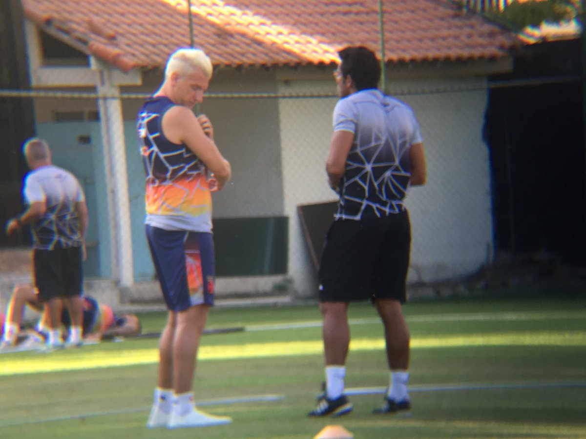Alberto Valentim ficou um bom tempo conversando com Maxi López antes do início da atividade. Atacante deve fazer estreia na temporada diante do Fluminense #gevas