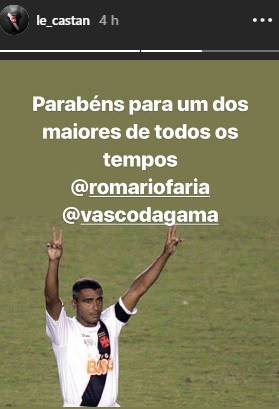 29/01/19 - Em rede social, Vasco parabeniza Romário, aniversariante do dia