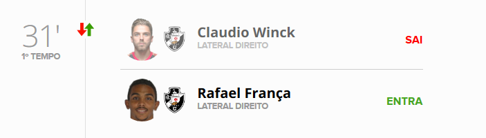 Rafael França substituiu Cláudio Winck aos 31 minutos do 1º tempo