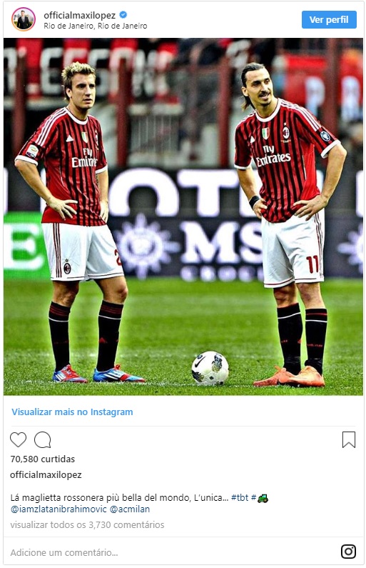 Principal peça ofensiva do Vasco, o atacante Maxi López publicou nesta quinta-feira em suas redes sociais uma foto vestindo a camisa do Milan, por onde teve rápida passagem na temporada 2011/2012, e pareceu ter aproveitado a oportunidade para cutucar o rival Flamengo.