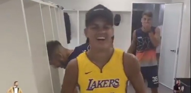 Moresche chega para treino com uniforme dos Lakers e leva trote dos mais experientes