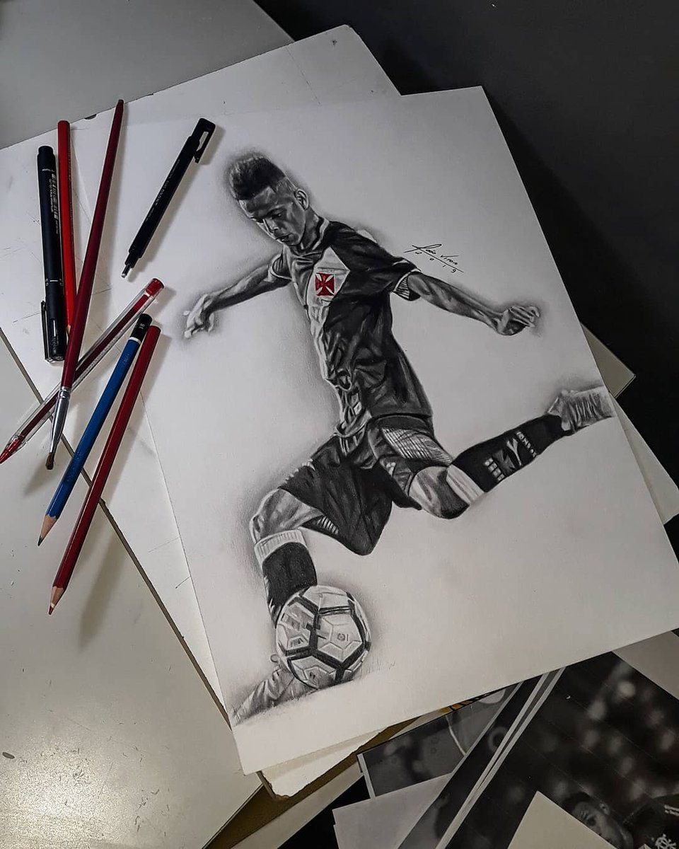 Desenhista vascaíno João Vitor finaliza retratos de Riquelme; veja
