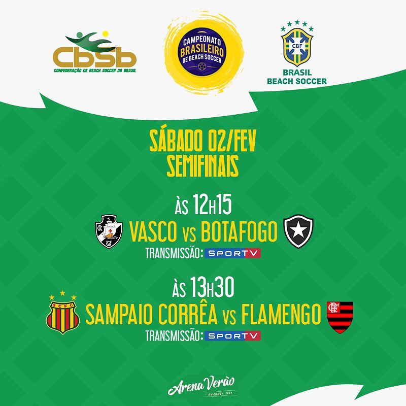 01/02/19 - Beach Soccer: Pelo Brasileiro, Vasco enfrenta o Urubu nesta 6ª às 17h45 com transmissão pelo Facebook