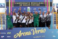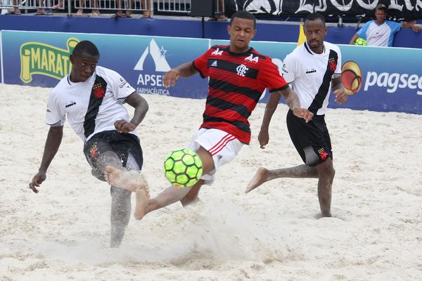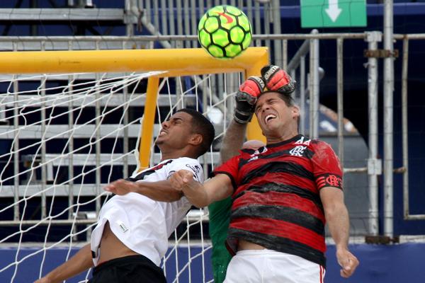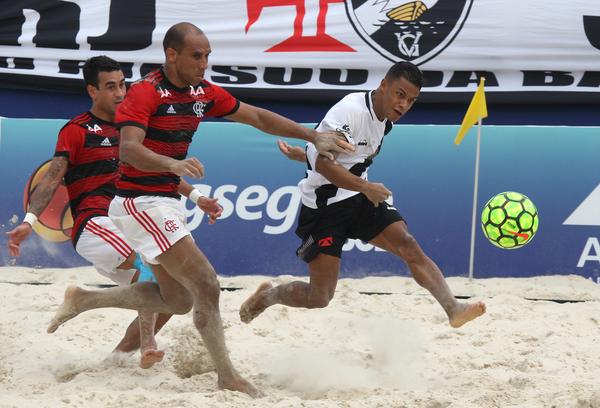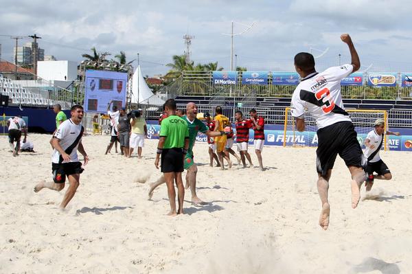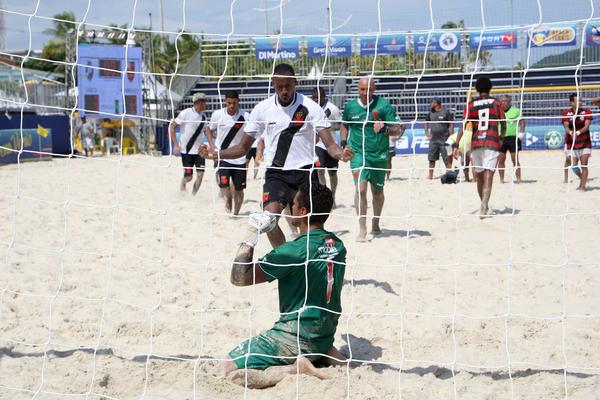O Vasco venceu o Flamengo nos pênaltis por 2 a 0 na tarde deste domingo em Guarujá (SP) e conquistou o Campeonato Brasileiro de Beach Soccer. No tempo normal, as equipes empataram por 2 a 2, com gols vascaínos de Jordan e Luquinhas. Nos pênaltis, o goleiro Rafa Padilha defendeu as duas cobranças dos rubro-negros, e Luquinhas e Antônio marcaram para o Vasco.