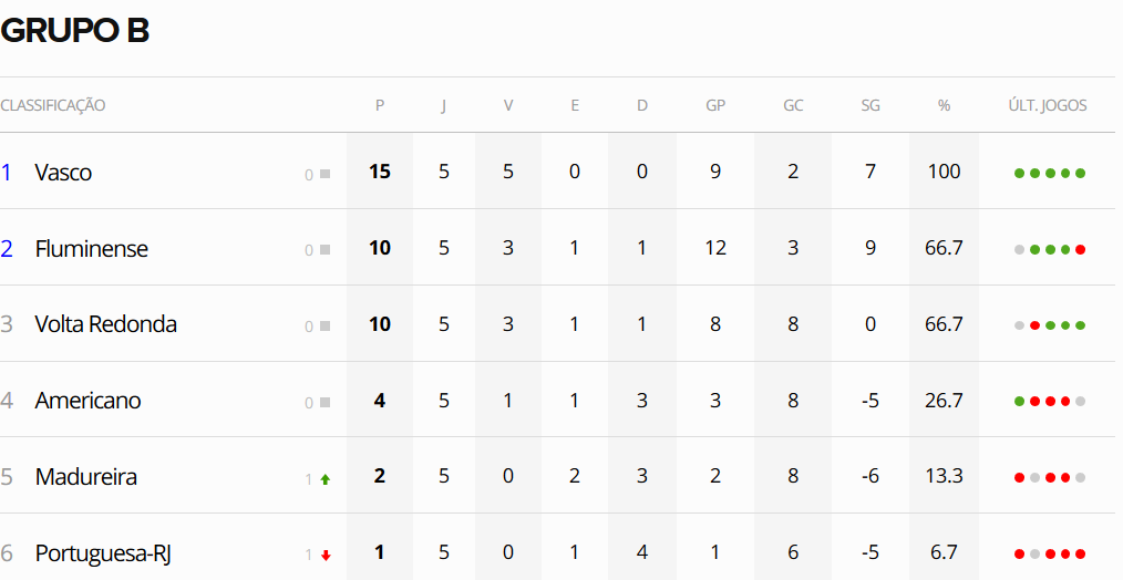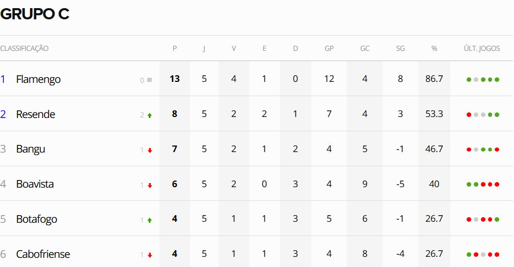 Vasco x Resende e Flamengo x Fluminense serão as semifinais da Taça Guanabara. Veja abaixo os números finais da fase de grupos da competição, com o término da 5ª e última rodada.