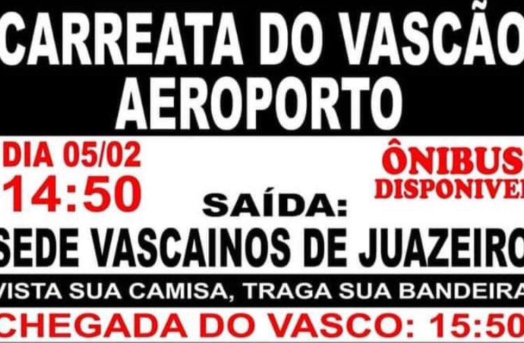 Torcida do Vasco em Juazeiro está organizando uma carreata com destino ao aeroporto para recepcionar os atletas.