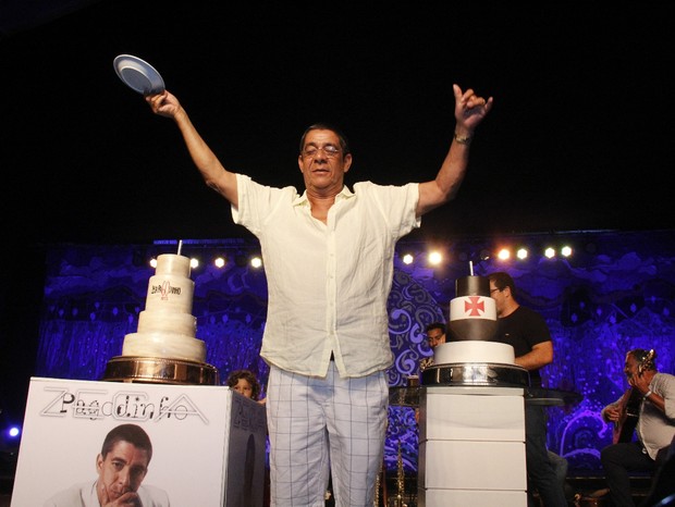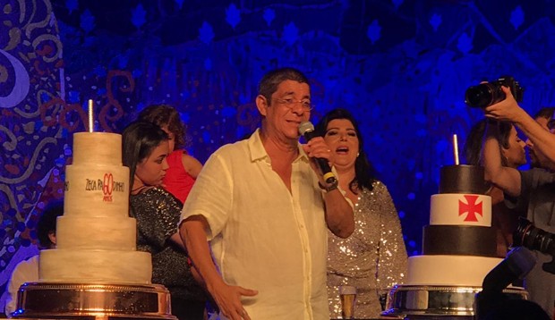 A Universal Music mandou fazer uma homenagem a Zeca no palco, mas o bolo veio com o brasão do time do Vasco - que é do também aniversariante Louis - já que Zeca torce para o também carioca Botafogo.