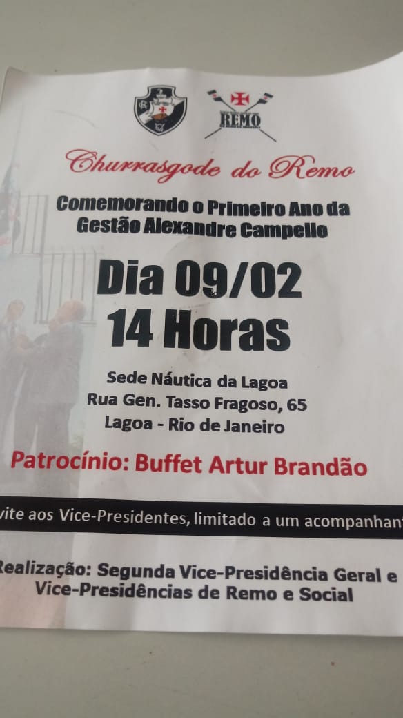 Será realizado um evento neste sábado (09) para comemorar o primeiro ano de gestão do presidente Alexandre Campello. O evento recebeu o nome de "Churrasgode" e acontecerá de forma privada, somente para convidados, na Sede Náutica da Lagoa, às 14 horas.