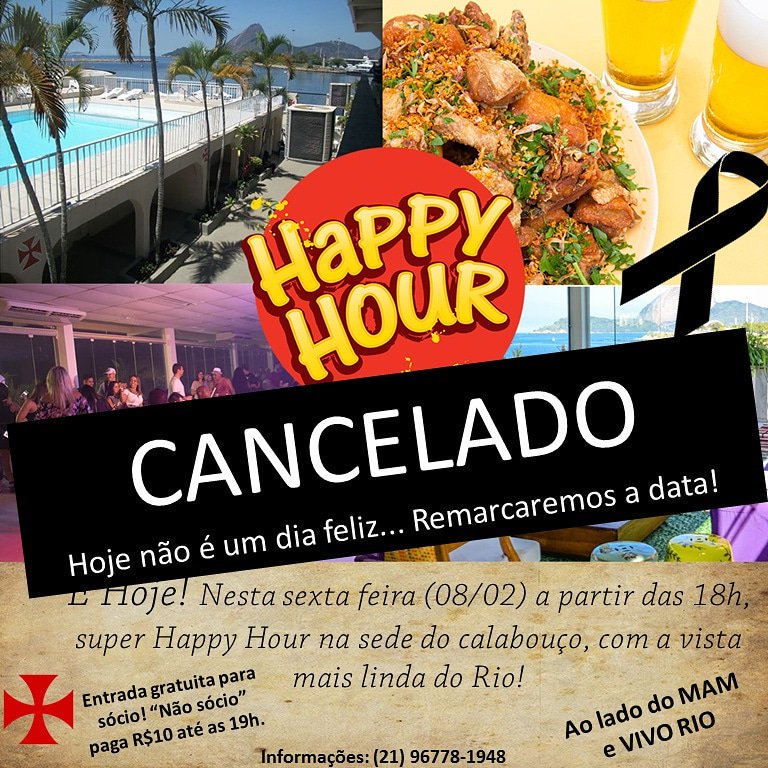 Em solidariedade a tragédia ocorrida com os atletas do Flamengo, está cancelado o Happy Hour que ocorreria hoje na sede social do Vasco do Calabouço.