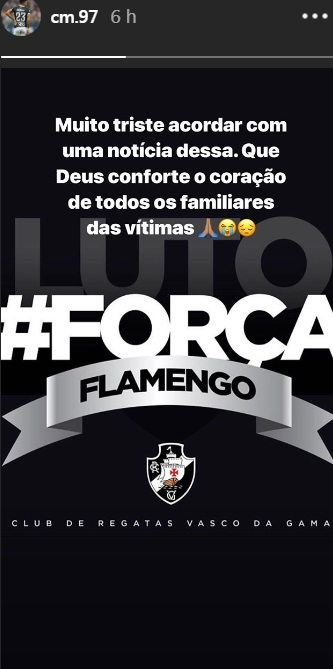 Devastado com essa notícia! Não há nem o que dizer diante de uma tragédia dessas. Só podemos nos unir em uma só torcida e rezar por todos aqueles que se foram, por todos os que se machucaram, por todo o clube, equipe técnica, jogadores e familiares dos atingidos por esse desastre. Que Deus esteja com cada um deles! Hoje somos todos Flamengo! #LUTO