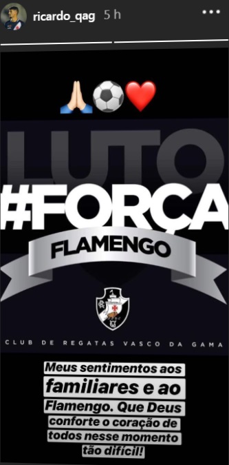 Veja mais manifestações de jogadores e ex-jogadores do Vasco sobre tragédia envolvendo atletas do Flamengo