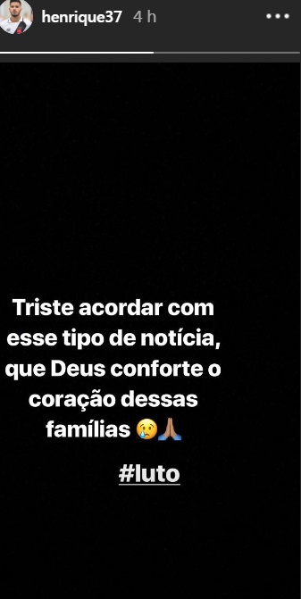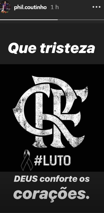 Um dia muito triste para todos nós. Vidas perdidas, sonhos interrompidos e famílias que necessitarão de muita força e fé para superar essa tragédia. Que Deus possa confortar esses corações. Ao nosso amigo Arthur, conterrâneo de Volta Redonda, que sua estrela brilhe junto ao pai eterno. #luto #forçaflamengo