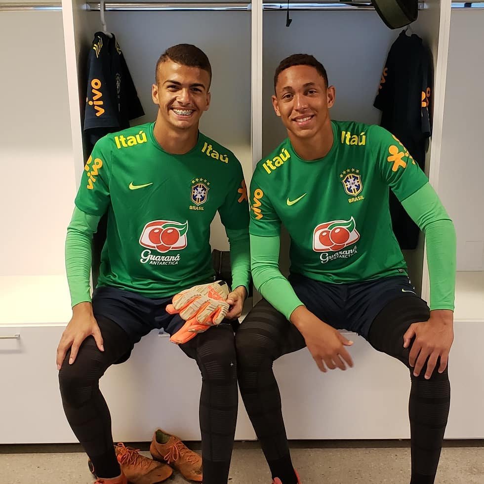 Goleiro Cadu Neves (esquerda), da equipe Sub-17 do Vasco, publicou uma nota emocionado falando sobre a morte do também goleiro Christian Emerio, que é uma das 10 vítimas confirmadas da tragédia no Ninho do Urubu.