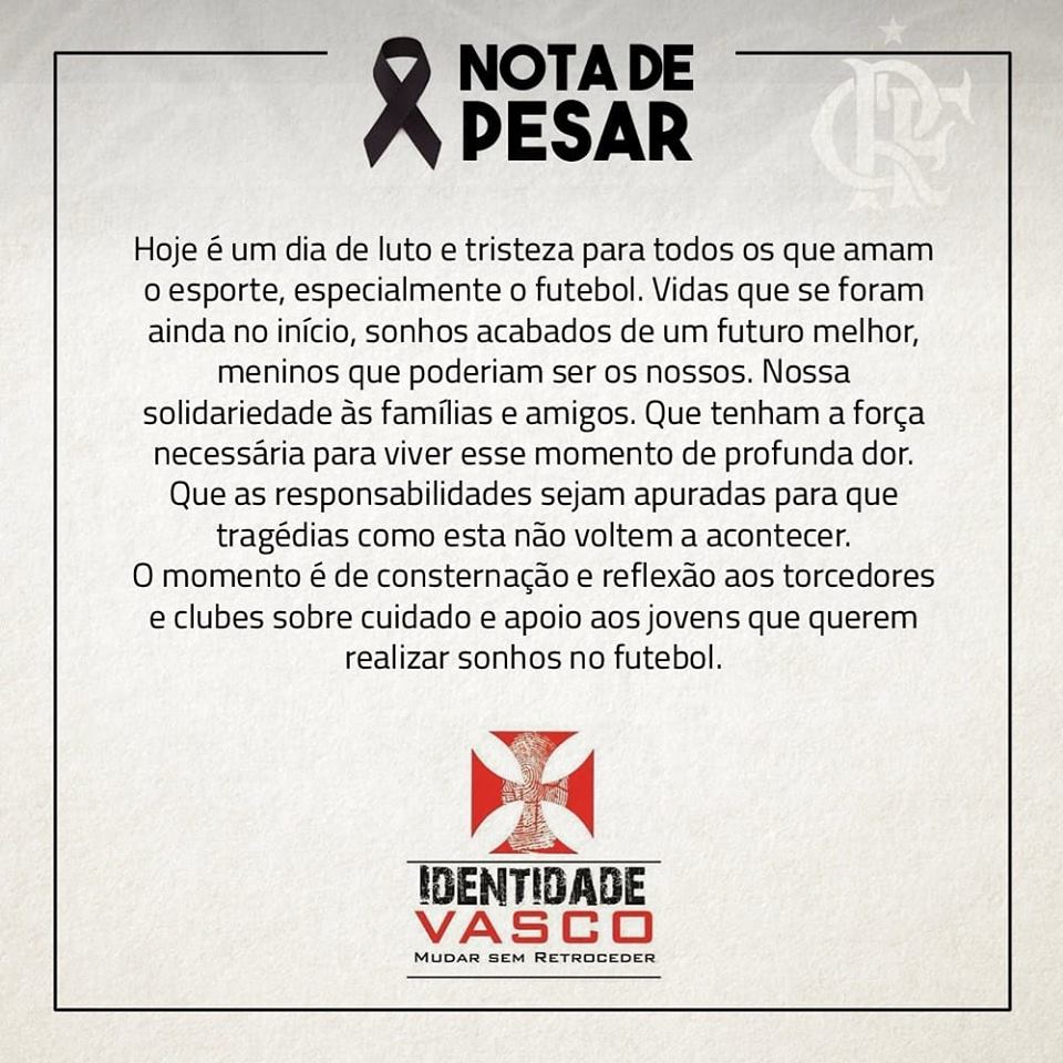 A Cruzada Vascaína lamenta o trágico incêndio ocorrido no CT do @Flamengo.
