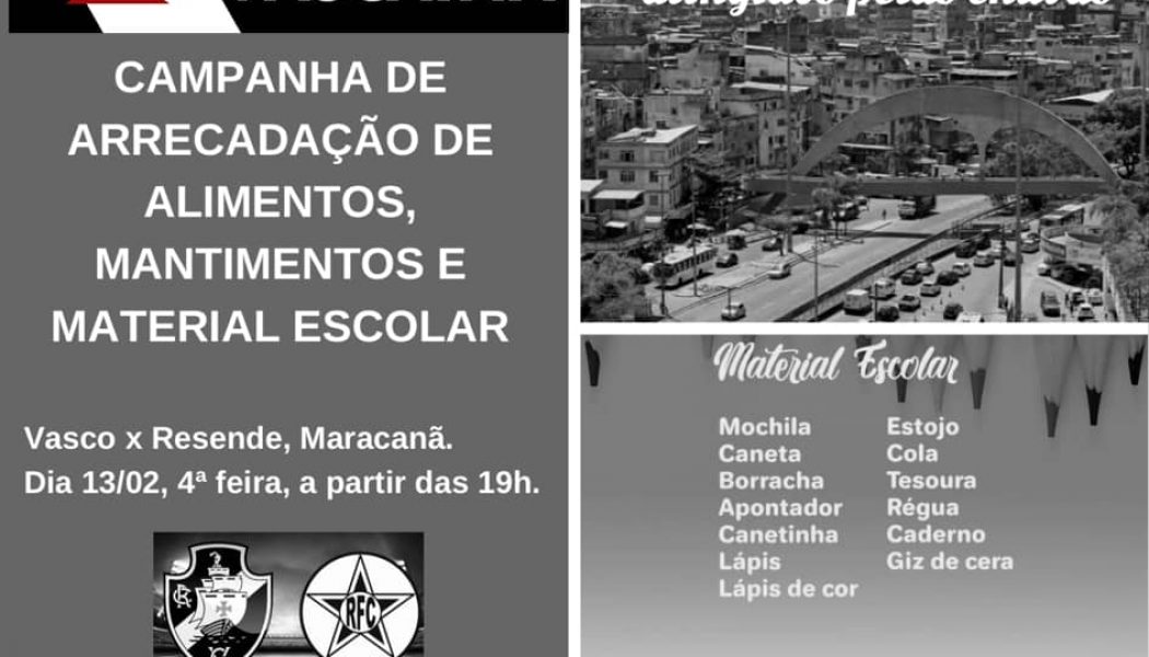 Em virtude do temporal que atingiu a cidade do Rio de Janeiro na última quarta-feira (6), torcedores do Vasco, membros do movimento "Esquerda Vascaína", estarão arrecadando alimentos não perecíveis, roupas, materiais de higiene para as vítimas da Rocinha. O grupo também arrecadará material escolar para o "Projeto Gratuidade", de Jardim Gramacho. O encontro está marcado para às 19h, antes da partida semifinal contra o Resende pela, Taça Guanabara, no Maracanã. O ponto de referência é a rampa da Universidade do Estado do Rio de Janeiro – Uerj).